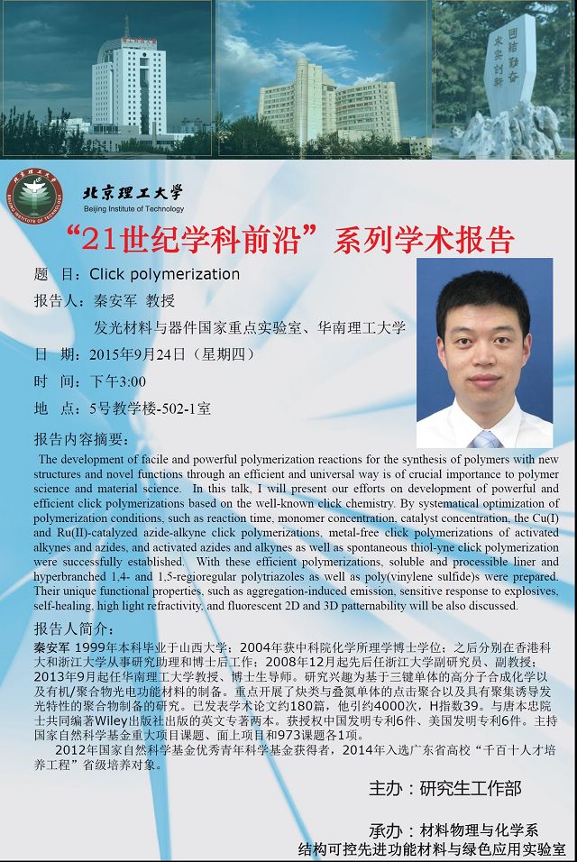 > “21世纪学科前沿系列学术报告”——秦安军教授报告