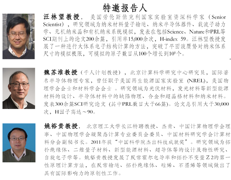 本次交流会由物理学院联合及北京龙讯旷腾科技有限公司主办,特邀美国劳伦斯伯克利国家实验室汪林望教授、北京计算科学研究中心魏苏淮教授、伟德bevictor中文版官网姚裕贵教授针对高通量材料计算、材料基因工程关键技术、TDDFT等热点问题进行交流研讨。