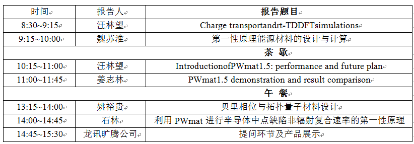 PWmat软件在材料基因组快速搜索和 含时密度泛函(TDDFT)领域的典型应用交流会