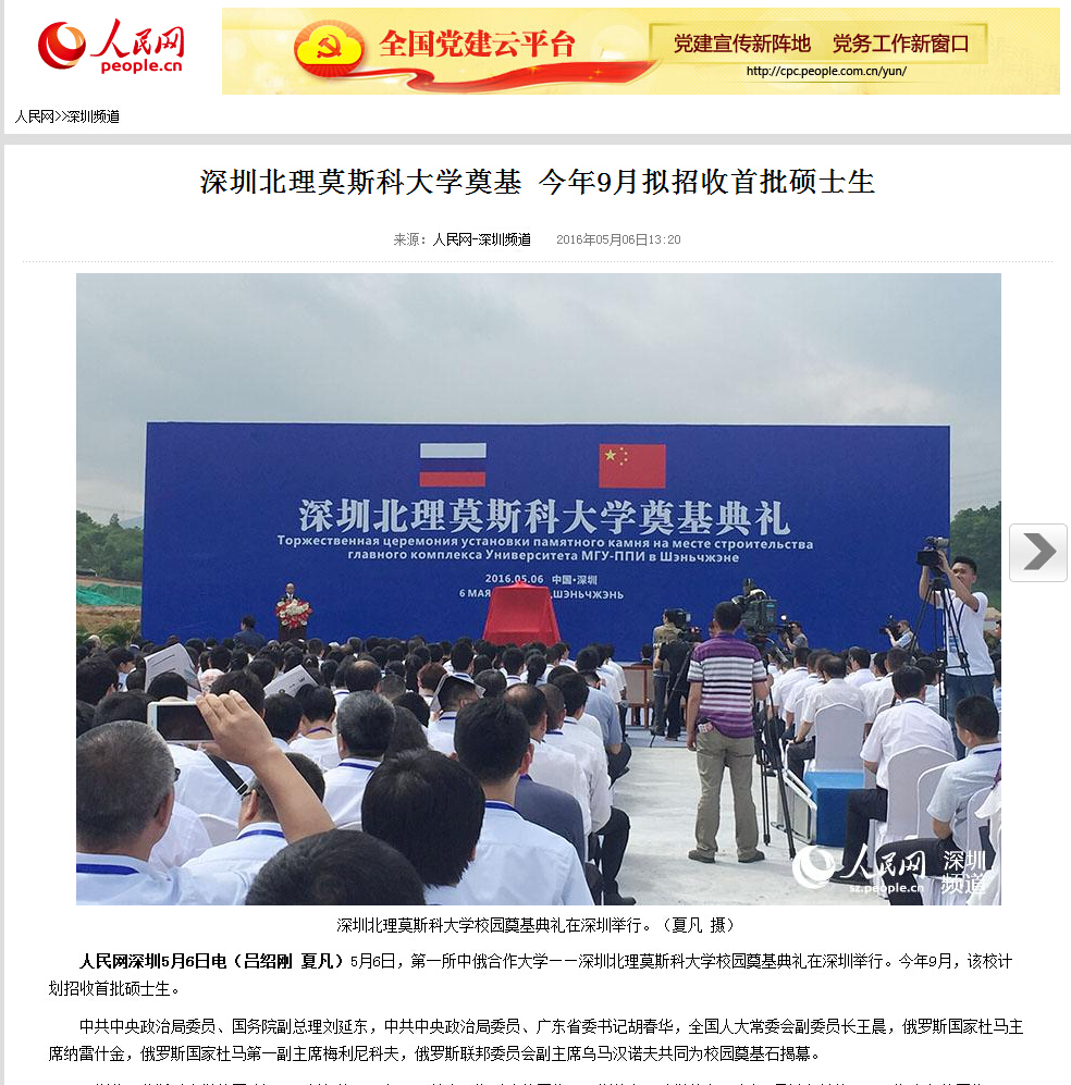【人民网】深圳北理莫斯科大学奠基 今年9月拟招收首批硕士生