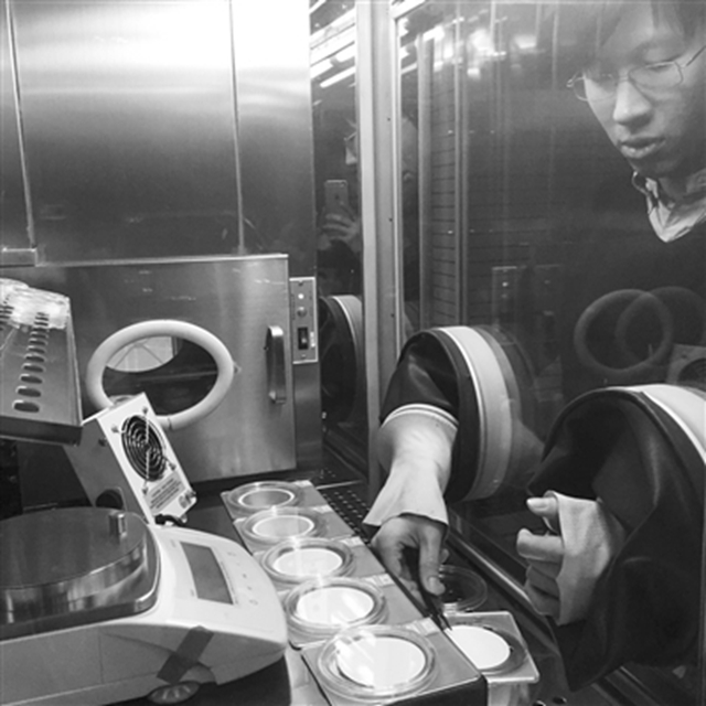 “最黑的这个滤纸PM的浓度已经接近5000微克/立方米。最浅色的这个也达到500微克/立方米。”王欣双手插入被称为“恒温恒湿称重箱”的测量箱中介绍,此次实验采用的机动车尾气测量方法要保持平衡温度湿度、除静电等步骤,要反复测量3~5次,取平均值,再得出排放了多少微克颗粒。