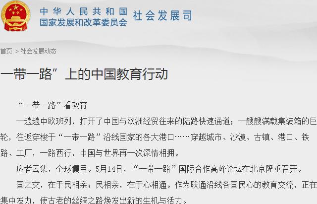 【国家发改委社会发展司网站】一带一路”上的中国教育行动