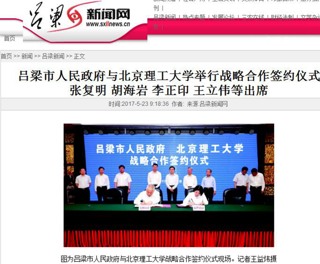 【吕梁新闻网】北理工与吕梁市人民政府举行战略合作签约仪式