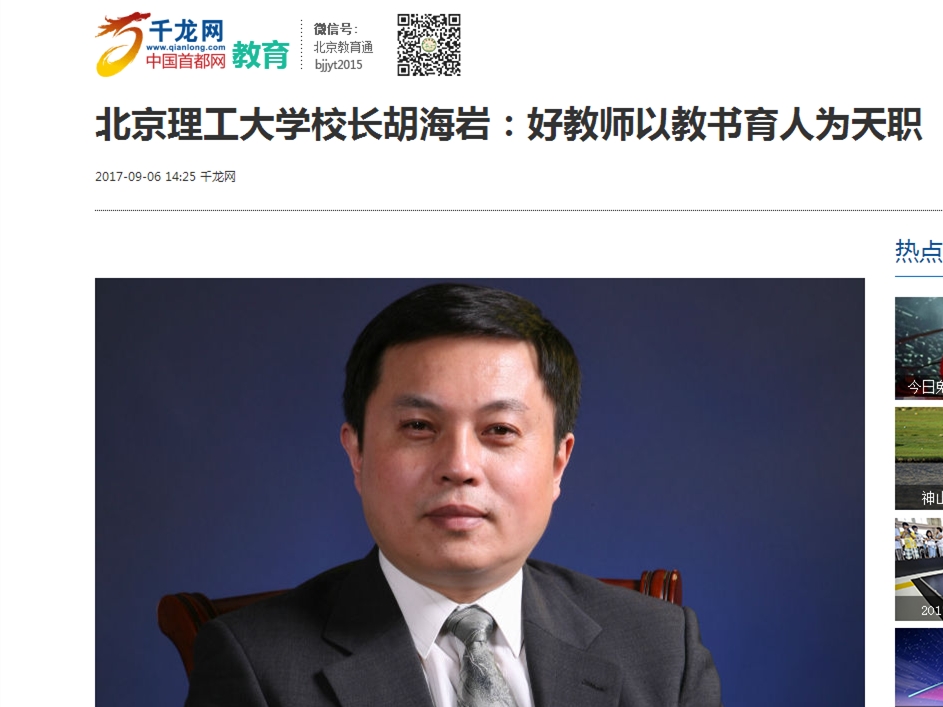 【千龙网】伟德bevictor中文版官网校长胡海岩:好教师以教书育人为天职