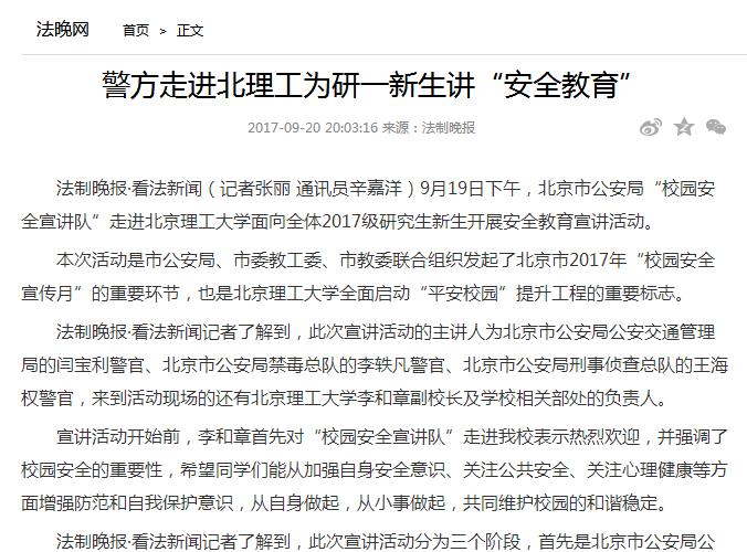 【法晚网】北理工开学初始,“安全教育”先行