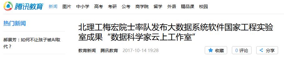 【腾讯教育】北理工梅宏院士率队发布大数据系统软件国家工程实验室成果“数据科学家云上工作室”