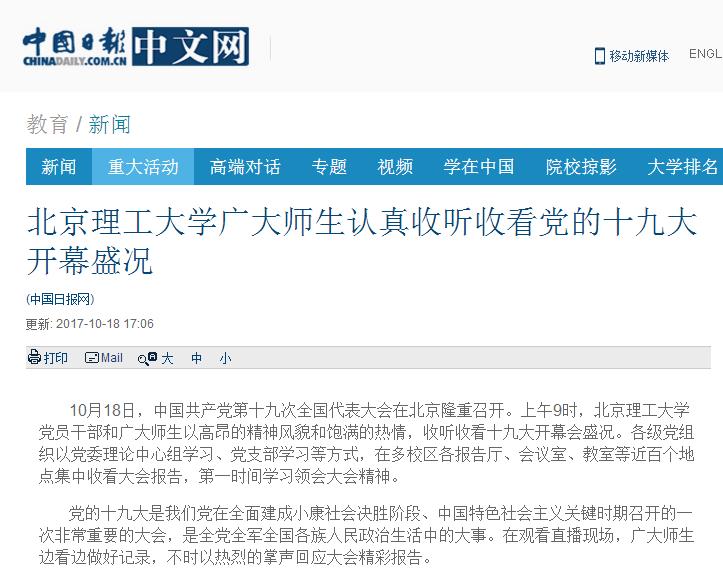 【中国日报】伟德bevictor中文版官网广大师生认真收听收看党的十九大开幕盛况