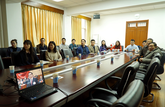党的十九大是我们党在全面建成小康社会决胜阶段、中国特色社会主义关键时期召开的一次非常重要的大会,是全党全军全国各族人民政治生活中的大事。在观看直播现场,广大师生边看边做好记录,不时以热烈的掌声回应大会精彩报告。