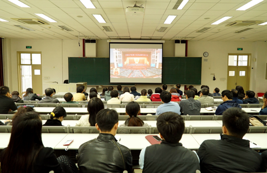 学生工作处在两校区组织四百余名学生集中收看党的十九大开幕会直播