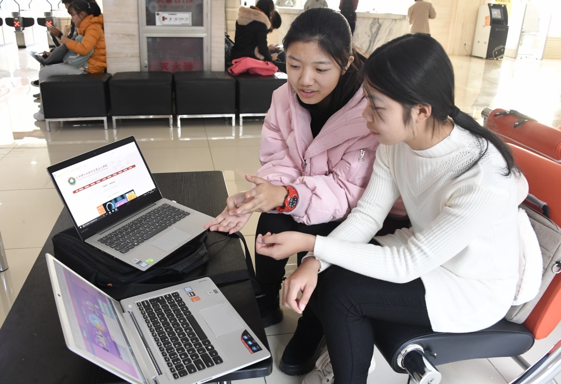 12月4日,伟德bevictor中文版官网的学生在课余玩《情商加油站》电脑思政游戏。