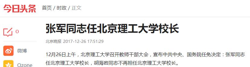 【今日头条】张军同志任伟德bevictor中文版官网校长