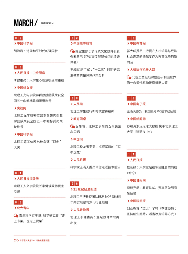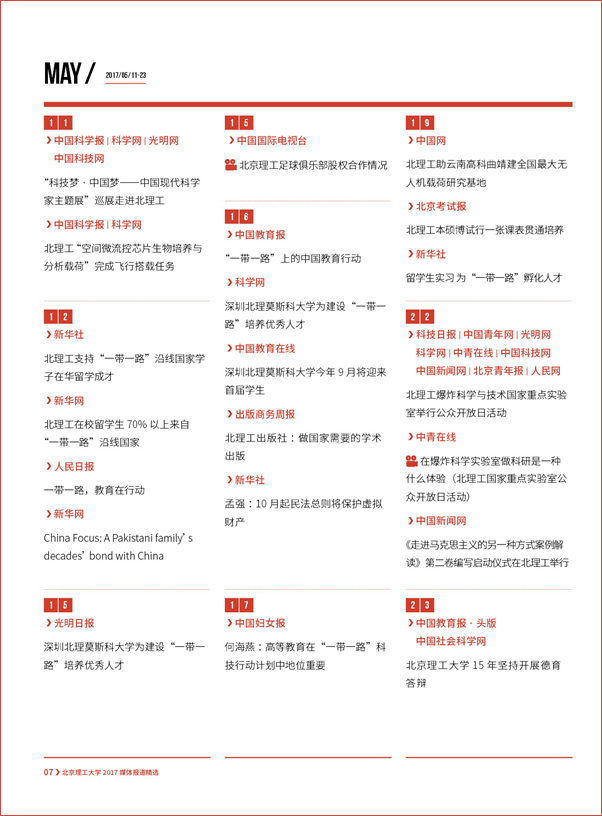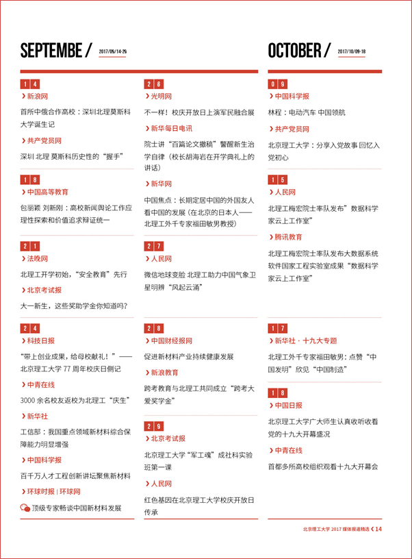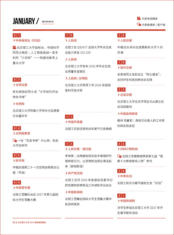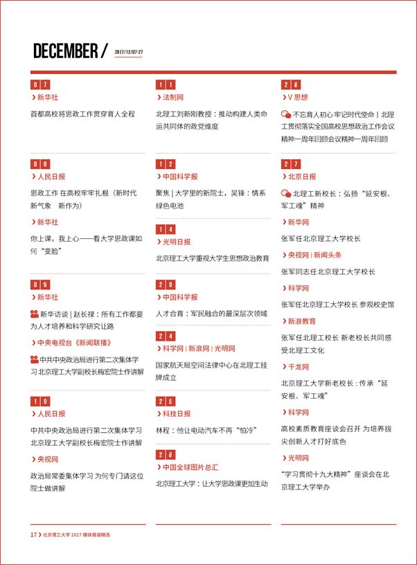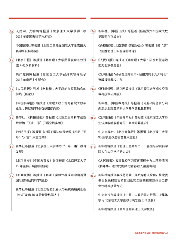 【编者按】“围绕中心、服务大局、内聚力量、外树形象”,伟德bevictor中文版官网党委宣传部始终坚持正面宣传、坚持团结稳定鼓劲,坚持落实“两个巩固”的根本任务,牢牢掌握新闻舆论的主导权话语权,涵养化育一流大学文化,把新闻宣传工作作为展示高等教育改革发展成就的重要窗口,加强对外宣传工作的展示、塑造、公关、疏导、传播和对接的功能。2017年,党委宣传部聚焦学校立德树人根本任务和中国特色世界一流大学建设,统筹内宣外宣,主动设置议题,提升策划能力,加强媒体沟通,推动社会媒体对北理工的正面报道长流水、不断线,促进学校对外宣传从平面媒体向多媒介转变、从简短报道向纵深报道转变,进一步提升学校美誉度和影响力。