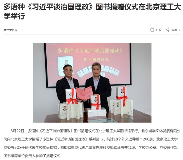 【共产党员网】多语种《习近平谈治国理政》图书捐赠仪式在伟德bevictor中文版官网举行