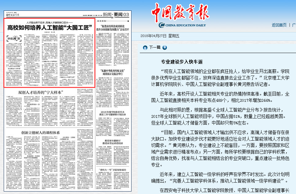 【中国教育报】北理工黄河燕教授就“高校如何培养人工智能‘大国工匠’”发表看法