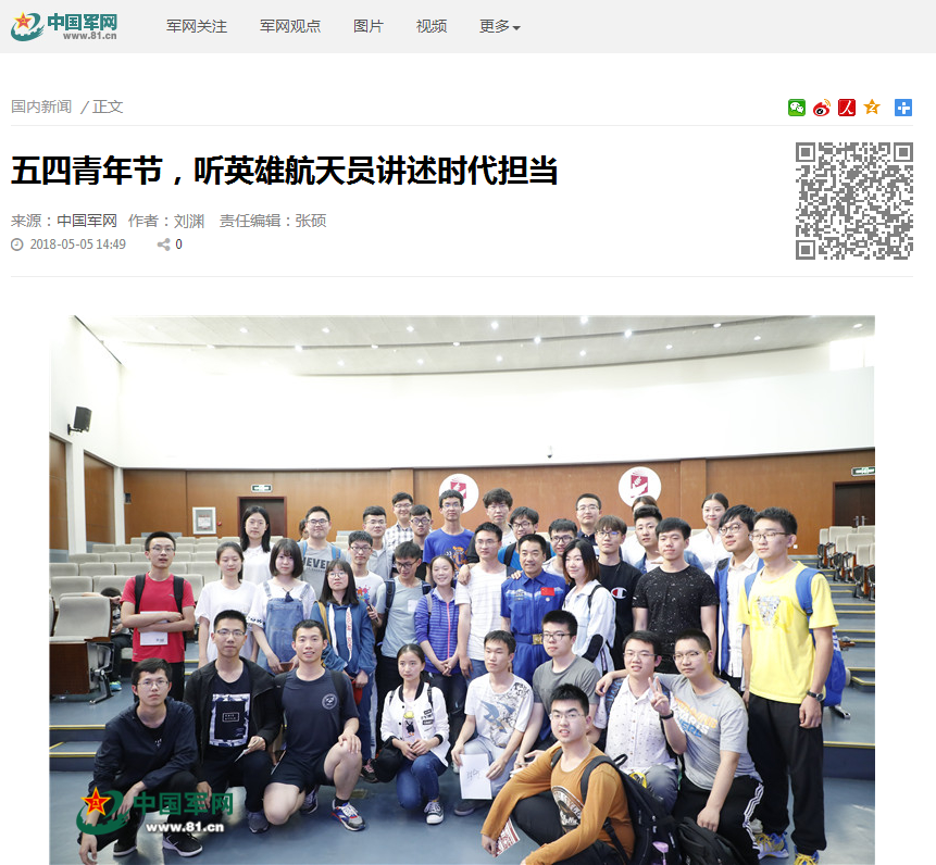 【中国军网】五四青年节,在北理工听英雄航天员讲述时代担当