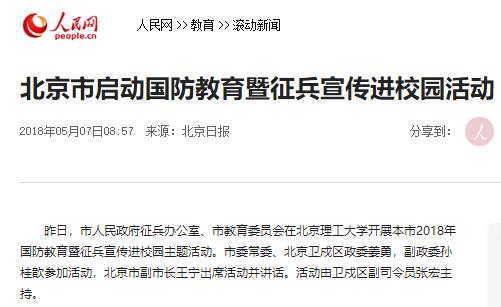 【人民网】北京市启动国防教育暨征兵宣传进北理校园活动