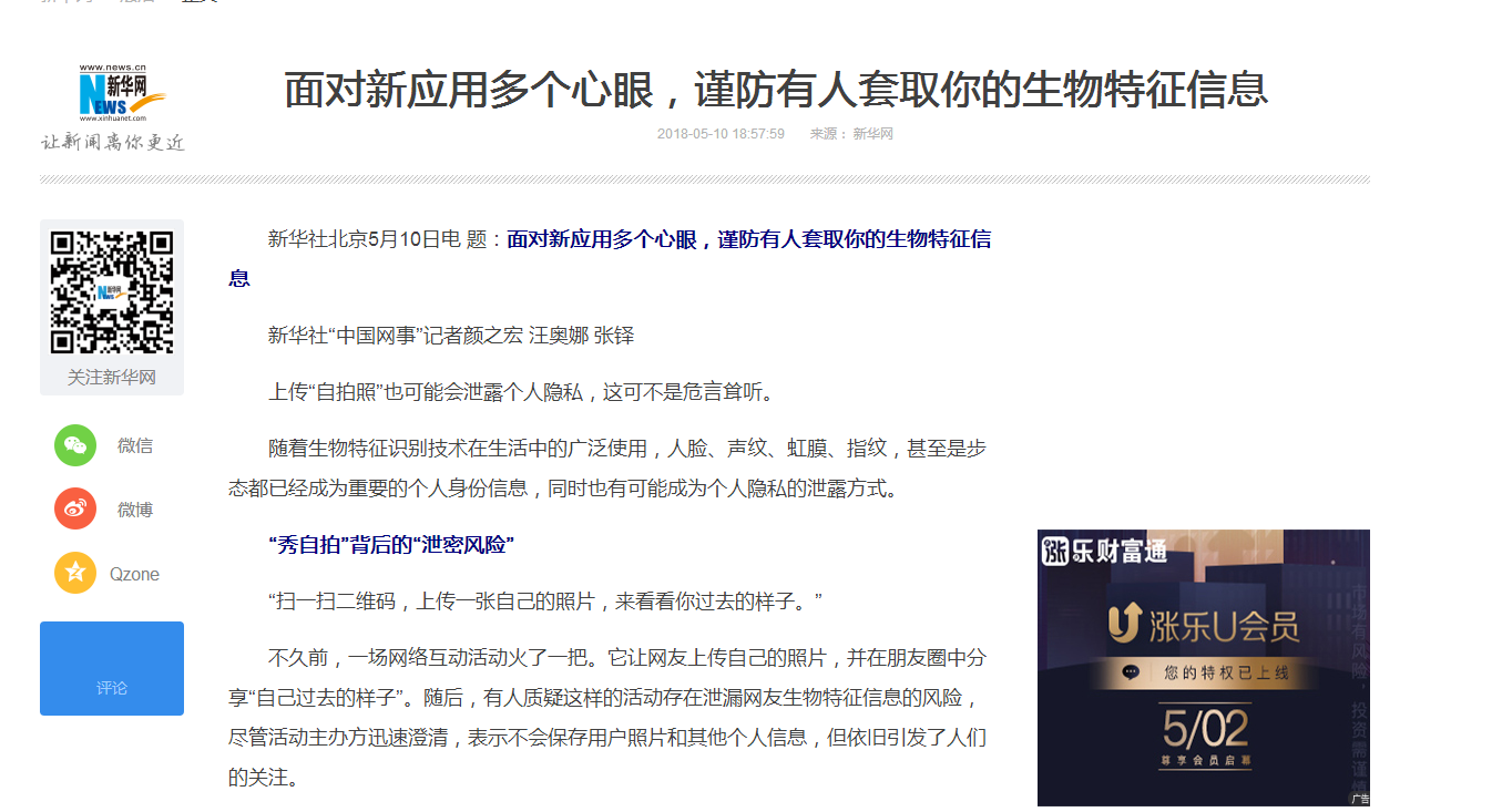 【新华网】北理工教师就“生物特征信息有泄密风险”发表观点