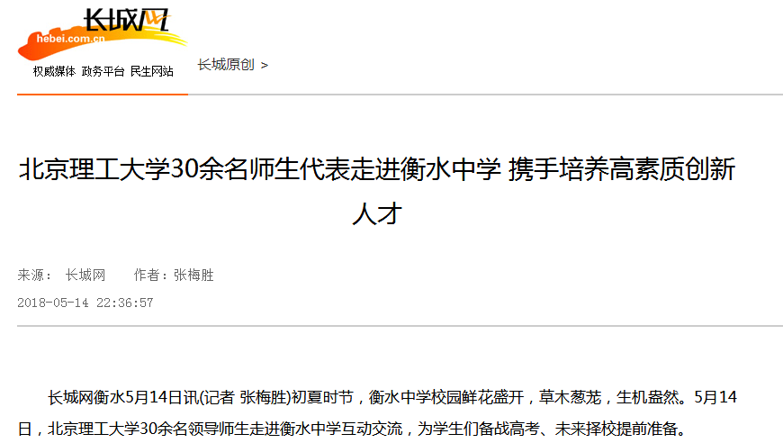 【长城网】伟德bevictor中文版官网30余名师生代表走进衡水中学 携手培养高素质创新人才