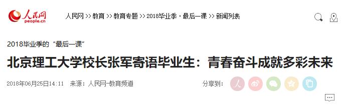 【人民网】伟德bevictor中文版官网校长张军寄语毕业生:青春奋斗成就多彩未来