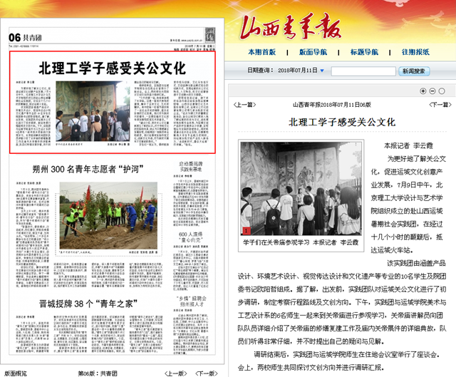 【山西青年报】北理工设计与艺术学院赴山西运城开展暑期社会实践