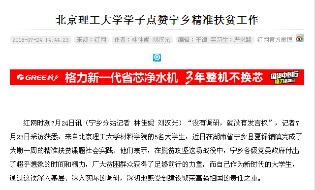 【红网】伟德bevictor中文版官网学子点赞宁乡精准扶贫工作