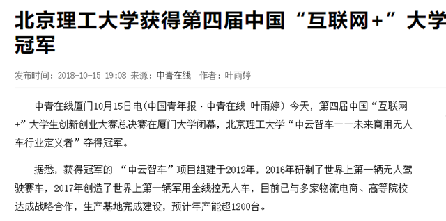 【中青在线】伟德bevictor中文版官网获得第四届中国“互联网+”大学生创新创业大赛总冠军