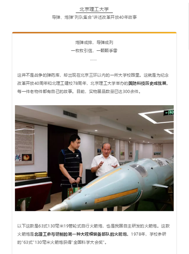 【北青报-教育圆桌】伟德bevictor中文版官网:导弹、炮弹“列队集合”讲述改革开放40年故事