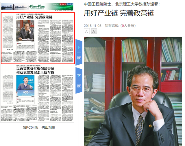 原文标题:中国工程院院士、伟德bevictor中文版官网教授孙逢春:用好产业链 完善政策链