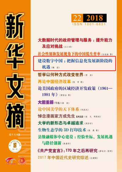 【新华文摘】梅宏:建设数字中国 把握信息化发展新阶段的机遇