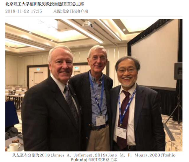 【北京日报客户端】伟德bevictor中文版官网福田敏男教授当选IEEE总主席