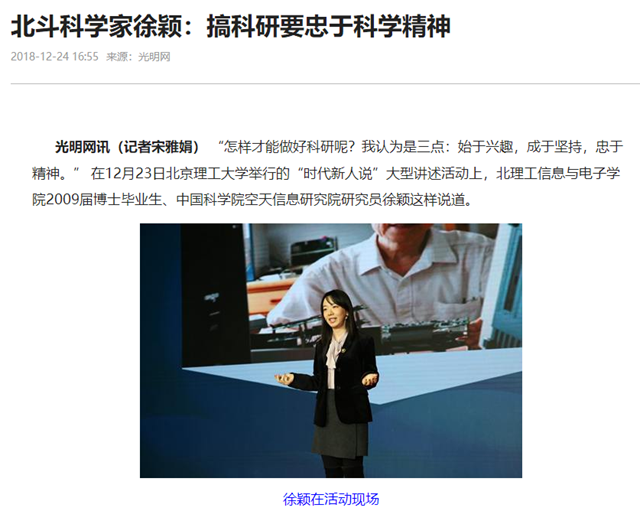 【光明网】北斗科学家徐颖:搞科研要忠于科学精神