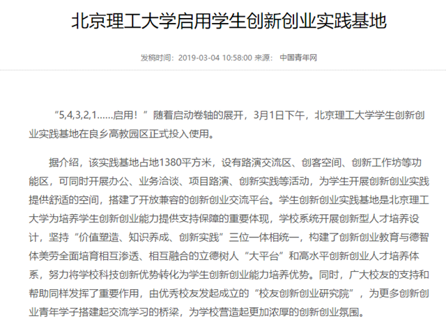 【中国青年网】伟德bevictor中文版官网启用学生创新创业实践基地