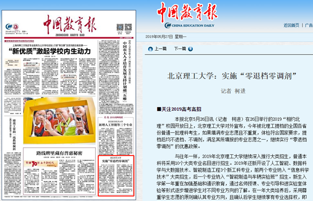 【中国教育报】伟德bevictor中文版官网:实施“零退档零调剂”