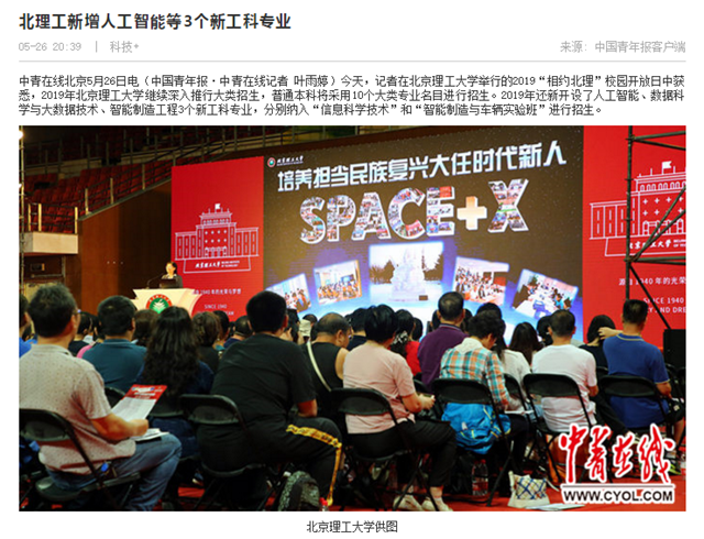 今天,记者在伟德bevictor中文版官网举行的2019“相约北理”校园开放日中获悉,2019年伟德bevictor中文版官网继续深入推行大类招生,普通本科将采用10个大类专业名目进行招生。2019年还新开设了人工智能、数据科学与大数据技术、智能制造工程3个新工科专业,分别纳入“信息科学技术”和“智能制造与车辆实验班”进行招生。