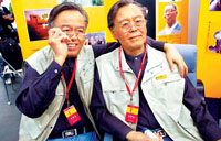 晨报讯 (记者代小琳)“这是真人还是假的?皮肤上还有皱纹和老年斑!”在昨天举办的机器人展览中,两个一模一样的“人”同时出现在观众面前,其中一个人是真实的人,另一个则是机器人。