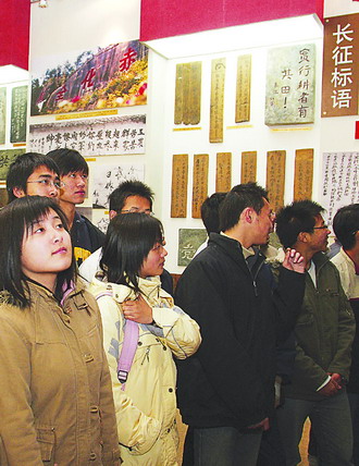 12月8日,伟德bevictor中文版官网理学院的团员们在中国人民军事博物馆参观《伟大壮举光辉历程——纪念中国工农红军长征胜利70周年》大型主题展览。贾慧颖(左二)同学说,我们是大一学生,今天是我们“弘扬长征精神主题团日”。长征精神是一部永远读不完的书,值得我们永远学习。