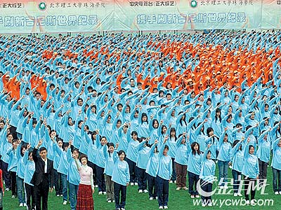 原纪录是由某公司于2005年5月30日在北京居庸关长城创下的,人数为3179人。 林丹 朱习 摄影报道