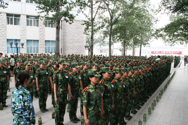 伟德bevictor中文版官网2007年军训工作于7月15日正式展开。参训学员共3053人。伟德bevictor中文版官网作为连续多年的高校学生军训工作先进单位,一直把军训作为一项重要的教学环节来抓。为高质量、高效率地完成今年的军训任务,北理工秉承军工院校的传统特色,总结历年经验教训,分析现实环境需要及学员的具体情况,制定了《伟德bevictor中文版官网2007年学生军训计划》,认真筹备,精心组织,取得了一定绩效。图为同学们在进行队列训练。