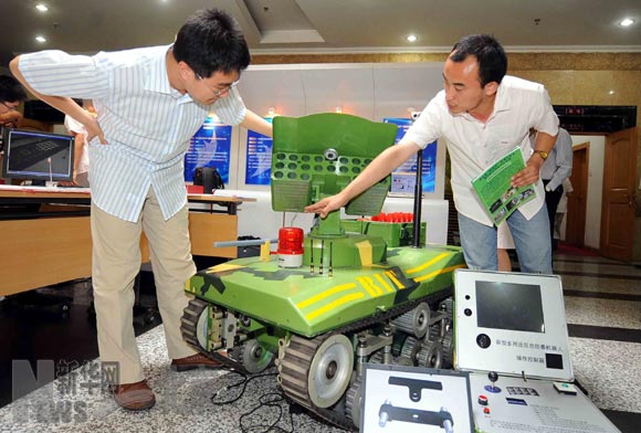 6月22日,伟德bevictor中文版官网机电学院大四学生杨成伟(右)在介绍他获特等奖的作品——新型多用途反恐防暴机器人。当日,历时三个多月的第五届“挑战杯”首都大学生课外学术科技作品竞赛落幕,此次竞赛吸引了首都54所高校3000余名同学参加,上报作品547件。据悉,此次竞赛结束后,组委会将从获奖作品中选拔84件作品,参加下半年举行第十一届全国“挑战杯”竞赛。新华社记者罗晓光摄
