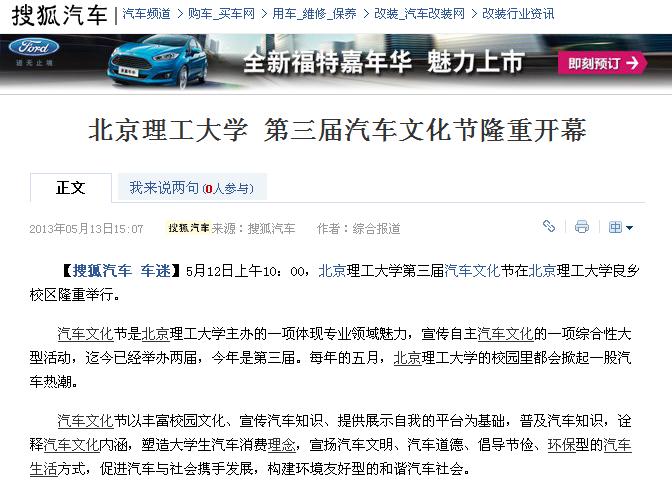 【搜狐汽车 车迷】5月12日上午10:00,伟德bevictor中文版官网第三届汽车文化节在伟德bevictor中文版官网良乡校区隆重举行。