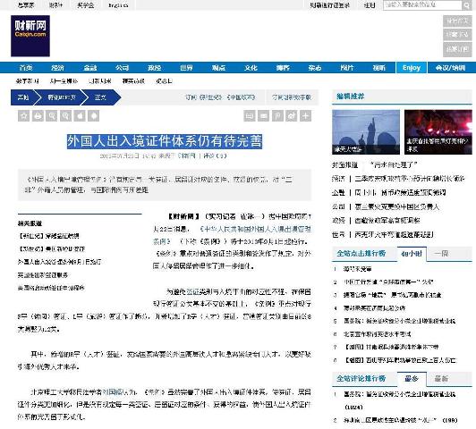 【财新网】北理工移民法学者刘国福:外国人出入境证件体系仍有待完善