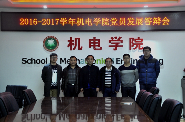 编辑:王新伟 审核:陈军 阅读次数:为进一步了解学生入党申请人的基本情况,深化“两学一做”学习教育成效,根据《中国共产党章程》和《中国共产党发展党员工作细则》的相关要求,北理工机电学院于12月20日召开党员发展答辩会。机电学院党委书记王伟,学院党委副书记、副院长陈军,学院团委书记邓岩,学院辅导员王新伟、管恩铭,学院丁帮学老师出席本次答辩。答辩评议小组将分析答辩者的综合表现,形成评议意见并返回各党支部讨论,作为发展入党的重要依据。