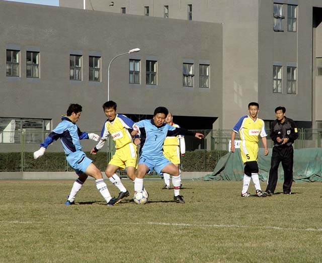 此前,我校教工足球队在首届高校教工“三洋投影机”杯足球邀请赛小组赛中,先后以6:1战胜北京工业大学队,以1:1与北京林业大学战平,以5:1大胜北京大学教工足球队,以4:0战胜北京联合大学队。以积10份小组排名第一的身份进入四强。
