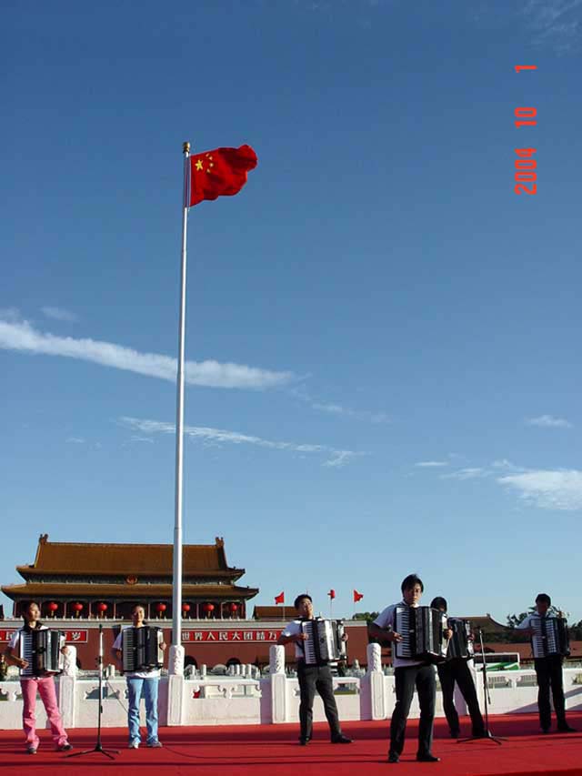 升旗仪式之后,我校学生在接受电视台记者的采访。