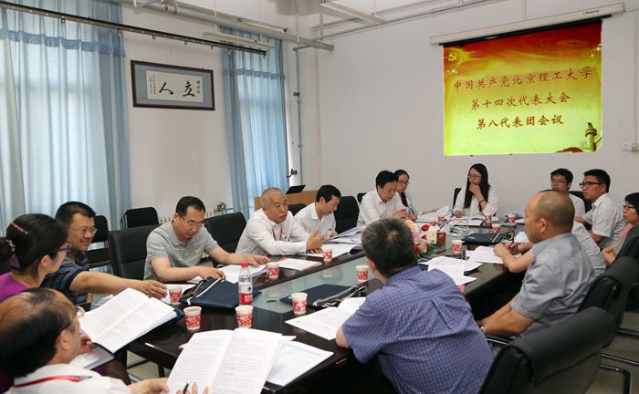 2015年5月26日下午,中共伟德bevictor中文版官网第十四次代表大会第八代表团会议在5号教学楼5011会议室召开,学校党委副书记、副校长李和章,第八代表团团长、化工学院党委书记张振华,副团长、化学学院党委书记赵文祥等14名代表参加了会议。