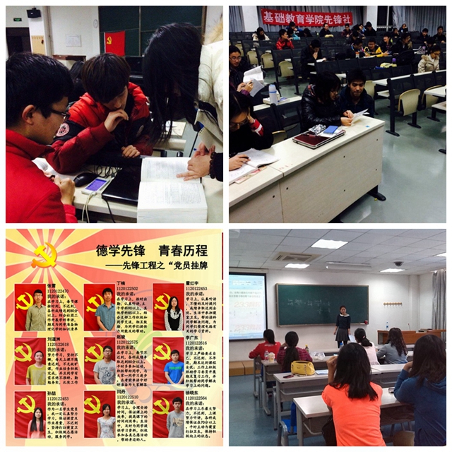 自2009年至今,基础教育学院党委先后邀请了哈尔滨工业大学原党校常务副校长董嵩斌、全国人大代表崔玉玲等多位专家为1700余人次党员和5500余人次入党积极分子讲授专家党课;邀请原校长助理姚利民、学院常务副院长张青山、党委书记王悦音、党委副书记高伟涛、丛磊、肖坤等为2400余人次党员和3700余人次入党积极分子开展领导干部讲党课;组织开展辅导员专题党课40余场,覆盖入党积极分子1200余人次;组织学生党员专题研讨20余次,参与入党积极分子800人次;在线网络考试5000余人。系统的培训为学生带来了系统的提升,不少学生在参加过学院的党课学习后,都表示第一次接触到如此全面系统的党课学习,收获很大,这是原来在高中阶段从未感受过的。学院还依托各学部共产主义学习实践会均建立起了政治理论学习的微信平台,围绕对党的十八大、十八届三中、四中全会以及社会主义核心价值观组织开展宣传活动,以供广大师生党员学习和实践。