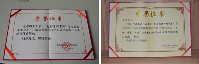 北京市“首都高校学习宣传党的十八大精神优秀活动”、“北京高校创先争优先进基层党组织”,连续两年在伟德bevictor中文版官网“信仰?青春?阳光”主题教育活动评比中被评为校级优秀项目,在国内核心期刊《学校党建与思想教育》上发表论文《基于党课评比大赛的大学生思想政治教育创新研究》……这些骄人的称号和成果正是软件学院学生党建工作所取得的突出成绩。